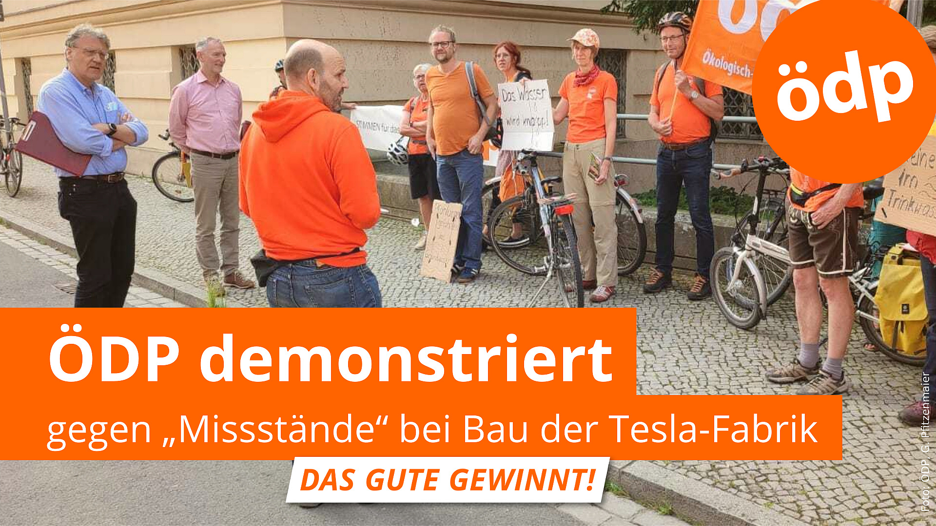 Mehr als 1.000 Kilometer sind sie durch Deutschland gefahren – auf dem Fahrrad! Der ÖDP ist kein Weg zu weit, wenn es um die Umwelt geht. In Potsdam gaben die sportlichen Umweltschützer ein Fahrradklingelkonzert – Auftakt eines Treffens der ÖDP mit Vertretern des Umweltministeriums Brandenburg. Anlass dafür: wiederholte Missstände auf der Tesla-Baustelle in Grünheide. Die ÖDP hatte dazu im Vorfeld einige Fragen an den grünen Umweltminister Axel Vogel geschickt. Die Antworten darauf gaben nun die Leiter der Abteilung Umwelt, Klimaschutz und Nachhaltigkeit vor dem Ministerium im Rahmen einer offenen und lebhaften Diskussion. Wichtigstes Thema dabei: der Wasserverbrauch.